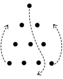 দশটা মার্বেল সাজিয়ে পিরামিড। এর থেকে তিনটে তুলে উল্টো পিরামিড তৈরি করো। পারবে?