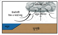 ঊর্ধ্বগমন: হালকা উষ্ণ বাতাস দ্রুত উপরে উঠে শীতল হয়ে ঘনীভূত হয়।