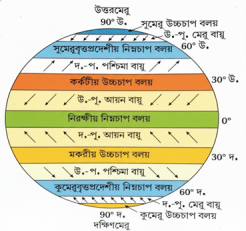 পৃথিবীর বায়ুচাপ বলয়ের সঙ্গে নিয়ত বায়ু প্রবাহের সম্পর্ক